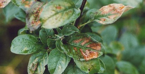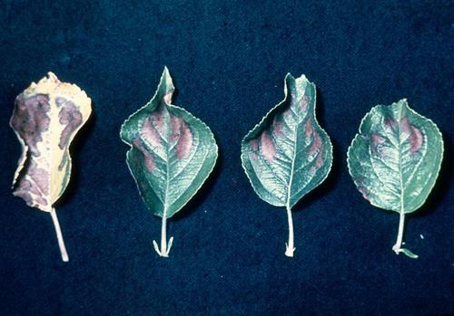 Apple and other fruits sometimes right away develop necrosis without preceding chlorosis.