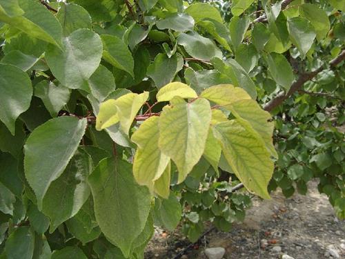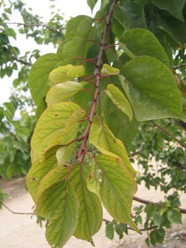 Peaches are the most susceptible of the stone fruit crops to iron deficiency, followed by plums, apricots and then cherries.