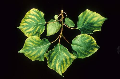 Interveinal chlorosis and bright yellowing develop first on older leaf margins and tips and spreads back to the main vein. The leaves often have a characteristic herringbone pattern of chlorosis on new season’s growth.