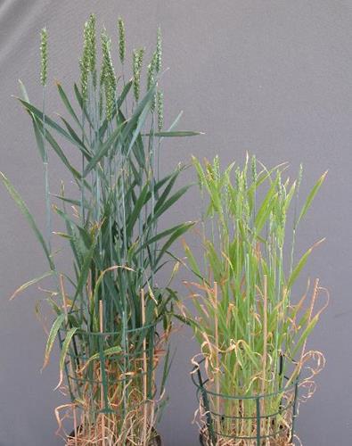 The whole plant including the ears shows stunted growth and yields poorly.