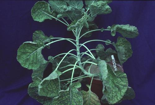 Older leaves show chlorosis, whereas leaf veins stay green or white respectively.