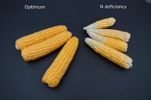 Reduced cob size and uncomplete cob fill due to N deficiency.