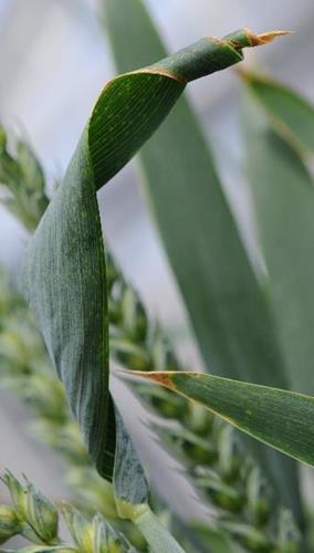 Flag leaf is twisted/curled.